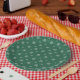 Simple modern holiday green & white snowflakes in a repeat pattern were used to create this perfect design for your holiday table. Coordinating napkins available.