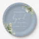 Plato De Papel Greenery Elegante Polvo Floral Azul Nupcial