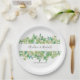 Las hojas de eucalipto verde fresco enmarcan tus nombres en una tipografía elegante con tu fecha especial fijada en un texto clásico en este moderno plato de papel temático de boda rural. Diseñado por Thisisnotme©