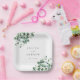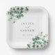 Introducing our minimalist and trendy wedding , Engagement, Anniversary Paper Plates featuring a watercolor Greenery Eucalyptus green leaves with an white background , creating a clean and stylish look for your special day.