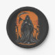 Plato De Papel Grim Reaper Cartoon in Sunset Graveyard