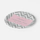 Plato De Papel Gris, Blanco y Pastel Pink Chevron Cumpleaños