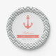 Plato De Papel Gris Chevron y Coral Pink Nautical Baby Shower