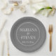 Platos modernos de papel boda para la recepción nupcial, cena de ensayo y ducha de novias con un minimalista tema gris o gris.