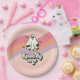 ¡Escandaloso! Platos retro groovy Ghost Halloween para fiestas de cumpleaños. Diseño bash de cumpleaños Spooktacular con fantasmas retro, flores y murciélagos.