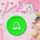 Plato De Papel Guay neón personalizado blanco verde monograma ini