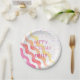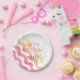 Olas de Arcoiris Estrellas Juerguidas Placas de Papel de Cumpleaños. Un diseño de cumpleaños colorido con nombre y feliz deseo de cumpleaños, olas y estrellas rosas y amarillas. Personaliza con tu nombre.