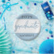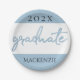 Moda de graduación de la fiesta de superposición de la plantilla con acentos en una sofisticada paleta blanca y azul de huevo. El diseño presenta una tipografía "graduada" de escritura con letras azules a mano sobre un fondo blanco junto con el nombre y el año de graduación del graduado. ¡Una gran manera de honrar tu educación media elemental, secundaria o universitaria! #classof2019