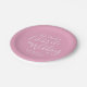 Guión de texto blanco rosado moderno y placas de papel de boda de corazón blanco. El texto tipográfico dice Comer, beber y celebrar al boda de entonces agregar sus propios nombres debajo. Una excelente adición personalizada a su bufé boda o mesas fiestas. Otros elementos y colores coincidentes disponibles en este diseño. © Diseño original de Sarah Trett www.sarahtrett.com para www.mylittleedenweddings.com