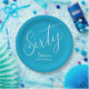 Plato De Papel Guión moderno simple Aqua Blue 60 cumpleaños