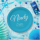 Plato De Papel Guión moderno simple Aqua Blue 90th Birthday Party