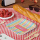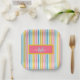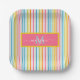 Plato De Papel Guión monograma de franjas arcoiris de verano