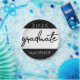 La plantilla moderna de la fiesta de graduación se superpone con acentos en una paleta minimalista básica en blanco y negro. El diseño presenta una tipografía "graduada" de escritura con letras negras con moda sobre un fondo blanco junto con el nombre y el año de graduación del grado. ¡Gran manera de honrar tu grado de primaria, secundaria, secundaria o universitario! Clases obligadas de 2019