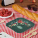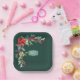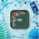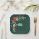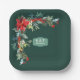 La guirnalda de esquina de poinsettia y muérdago de Navidad sobre un fondo verde esmeralda crea un plato de papel festivo para fiestas y reuniones. La insignia central es un verde salvia con las iniciales de una pareja que celebra un aniversario o se puede reemplazar con cualquier nombre o fecha para adaptarla a su evento.