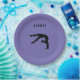 Plato De Papel Gymnastics paper plates with personalized name.