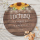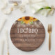 Luzcas cuerdas bonitas y girasoles decoran los detalles de la celebración de su fiesta de compromiso especial en elegante tipografía en un fondo de madera rústica. Diseñado por Thisisnotme