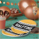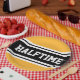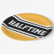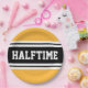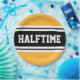 Este diseño deportivo, atlético, presenta texto HALFTIME en negrita dentro de una banda ancha negra resaltada con doble rayas blancas de carreras contra fondo amarillo dorado. El texto de este diseño se puede personalizar.