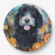 Plato De Papel Halloween Bernedoodle Con Calabazas Asustadas