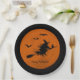 Plato De Papel Halloween Black Witch Flying Naranja Moon