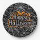 Una Feliz Papel De Halloween En Negro Con Cobwebs Blancas Y Bats De Naranjas Para Las Fiestas De Halloween