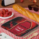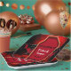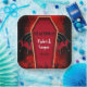 Te encantará este fondo ahumado rojo y negro con un ataúd, alas de murciélago y árboles espeluznantes. Las invitaciones coincidentes están disponibles. Apropiado sólo para tazones cuadrados.