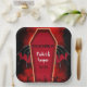 Plato De Papel Halloween Coffin Bat Wings Black Red Boda