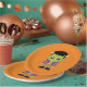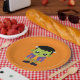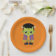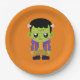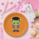 Placas de papel con una divertida imagen de Halloween que presenta un monstruo Frankenstein verde.