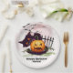 Plato De Papel Halloween del gato negro y Jack o' Lantern