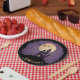 Un dramático diseño de placas de Halloween con una silueta de casa embrujada contra una luna llena brillante y un cielo nocturno morado. Los murciélagos voladores y los árboles espeluznantes añaden un toque espeluznante perfecto, mientras que el audaz guión "Spooky!" lo prepara para el fiesta. Ideal para reuniones de Halloween, fiestas de temática gótica o eventos de casa embrujados, estos platos le dan un ambiente elegante y espeluznante a su mesa.