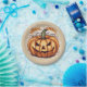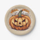 Digitales Design von einem großen Kürbis. Diese Kombination aus Kürbis, Grimasse und Halloween-Banner ist eine beliebte Dekoration während der Herbst- und Halloween-Zeit. Ein klassisches Symbol für die gruselige Jahreszeit.
