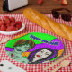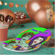 Estilo de arte pop vampiro y cal zombie verde y púrpura. Platos de papel de la fiesta de Halloween.
