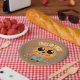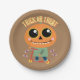 Platos de Halloween, fondo marrón con calabaza de moto, Trick o Trek en amarillo