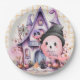 Plato De Papel Halloween rosa mansión fantasma lindo cumpleaños