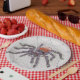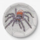 Divertidas placas de papel de la fiesta de Halloween con una araña gigante, escalofriante pero fresca, y bolígrafo web y ilustracion de tinta. ¡Feliz Halloween!