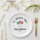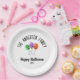 Plato De Papel Halloween Triste Calabaza Globos Nombre personaliz
