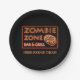 Estos graciosos platos de fiesta zombies leen Zombie Zone Bar & Grill - Comida fresca en marcha. Ideal para una fiesta de Halloween con temática zombie.