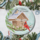 This paper plate features a cozy winter birdhouse decorated with a birthday banner, as a tufted titmouse and a cardinal stop by. Soft seasonal charm makes it a lovely addition to an 80th birthday celebration.