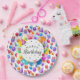 A Colorful Happy Birthday Paper Plate Design With Hats, Balloons and Gifts