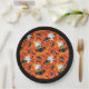 Feliz plato de papel de Halloween con un murciélago vampiro sonriente en una noche de luna llena.