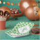 Naranja blanco verde cuatro tréboles de hojas sobre fondo de felpa con texto editable "Feliz Día de San Patricio" fecha y apellido fácilmente personalizado, para fiesta, cena, cóctel o cualquier otra ocasión.