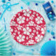 Patrón hawaiano de Hu;a (Hibiscus) en rojo. Derechos de autor de Kelly Hironaka, No. 3 Design