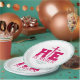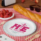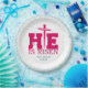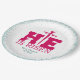 Colorful pink and teal Hi is Risen! Easter Sunday paper plates, edit all type yourself when ordering.