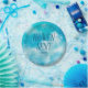 Una chapa de ducha de bebé de ensueño y elegancia con un arte acuarela de cielo azul con nubes y estrellas. El texto dice "enviado por el cielo".