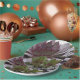 Este plato de papel presenta la variedad de gallinas y pollitos de suculento.