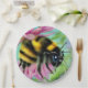 Plato De Papel Hermosa abeja en una flor rosa cerca