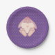 Los invitados al primer cumpleaños de su hijo estarán encantados, pero este encantador conejito con fiesta de cumpleaños púrpura corazón placa un diseño único con un conejito de bebé de dibujos animados en colores pastel sobre un fondo morado con puntos.