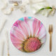 Platos de papel con una flor rosa y blanca vibrante. La fotografía de cerca de esta flor encantadora realmente llama tu atención.