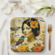 Plato De Papel Hermosa mujer de época con pájaros y flores