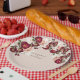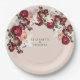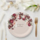 Platos de papel de bonito para tu boda victoriana con el Rosa Garden. Hermosas rosas rojas, peonías rosadas y Lilies blancas sobre un fondo rosa rubor.