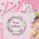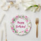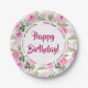 Plato De Papel Hermosas rosas rosadas Feliz cumpleaños